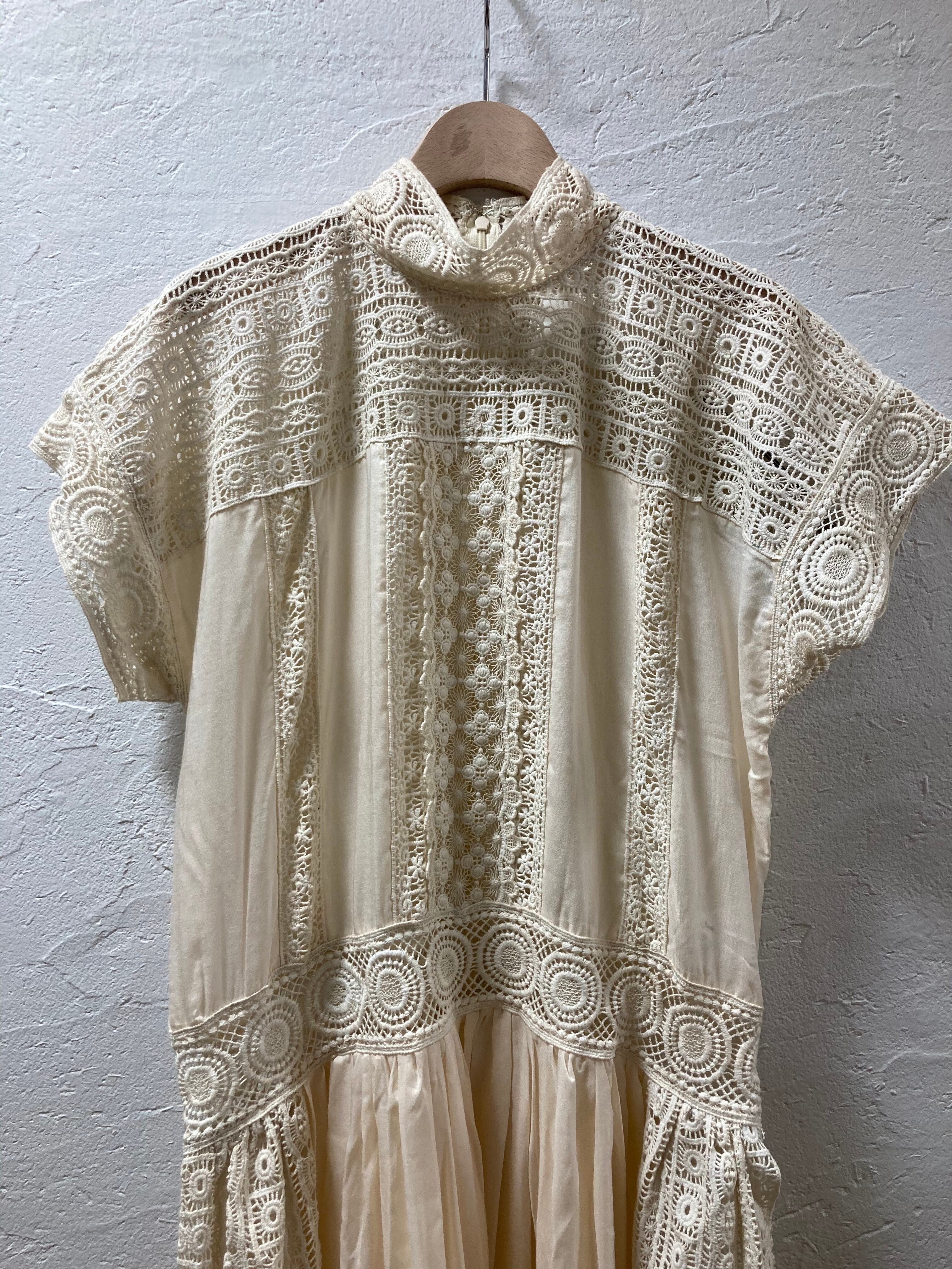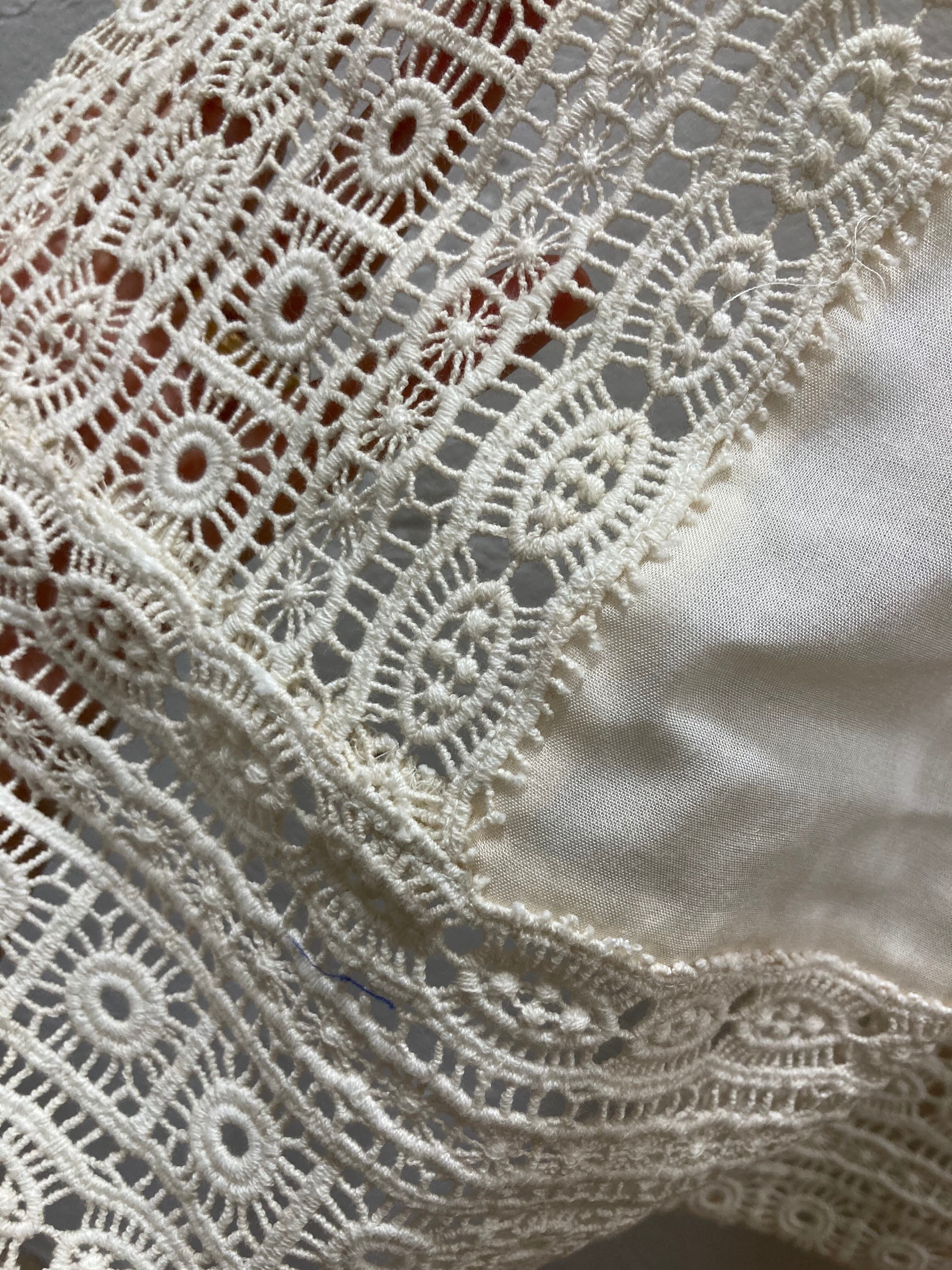 去年もお問い合わせを沢山頂いてました。レースをふんだんに使ったワンピース。スカート部分は、両サイドスリットになってるので、下にデニムを履いたりスカートで重ねたり、重ね着を楽しんでくださいね。後ろファスナーあきです。白も、真っ白ではなくキナリです。綿レース無地部分はレーヨンなので、上品なとろみのある仕上がりです。