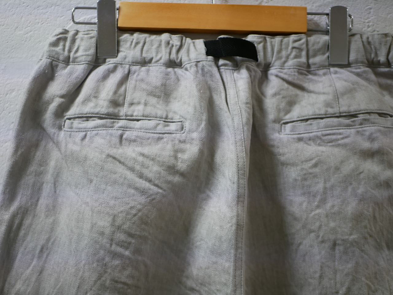 リネン100%のクライミングパンツ。適度にゆったりナチュラルな雰囲気のカラーデニムです。夏場もTシャツやブラウスで楽に履いていただけます。ウェストは総ゴムで、ファスナー開き。ベルトで少し絞れます。