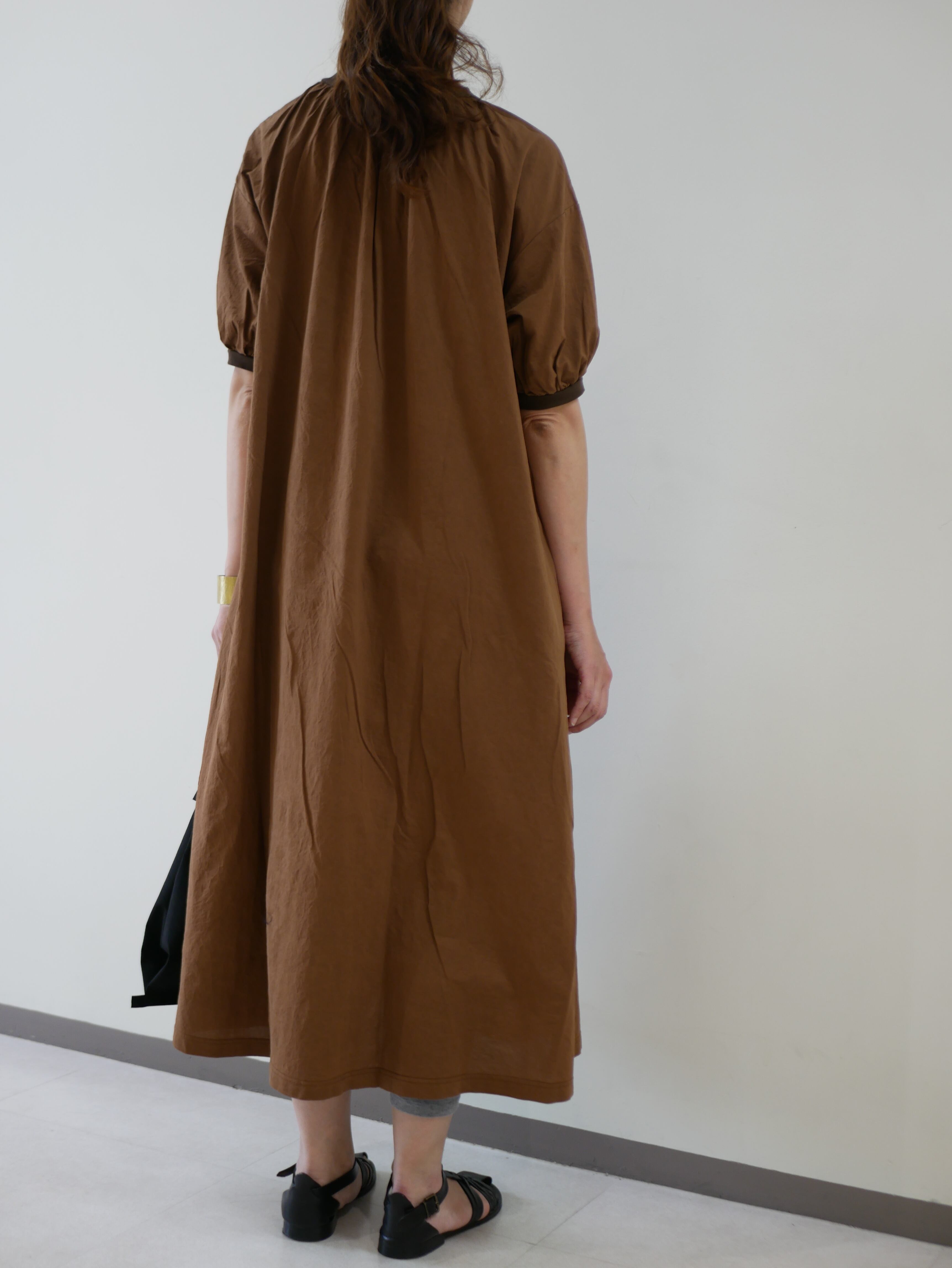 塩縮加工をしてある生地で、カラッとした風合いがこれからの季節にもってこいです。涼しくたっぷりしていて、袖口と衿リブがスポーティな印象でカジュアルに着ていただけます。リブの伸縮もあり、Tシャツのように着脱できる一枚です。