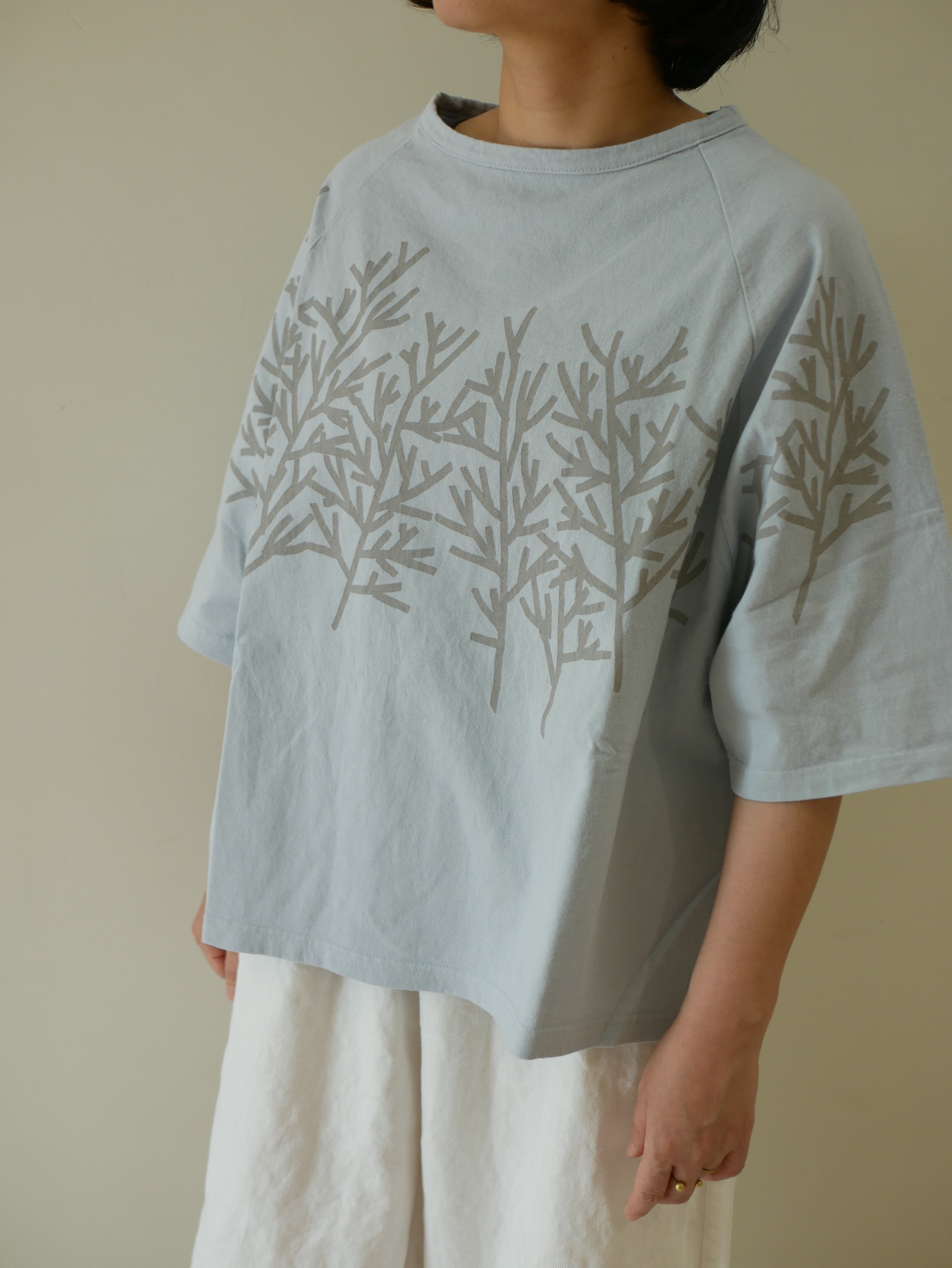 たっぷりしたシルエットにお袖まで、優しいカラーのプリントが。お袖も長めで、安心です。しっかりした生地感です。お洗濯可能。