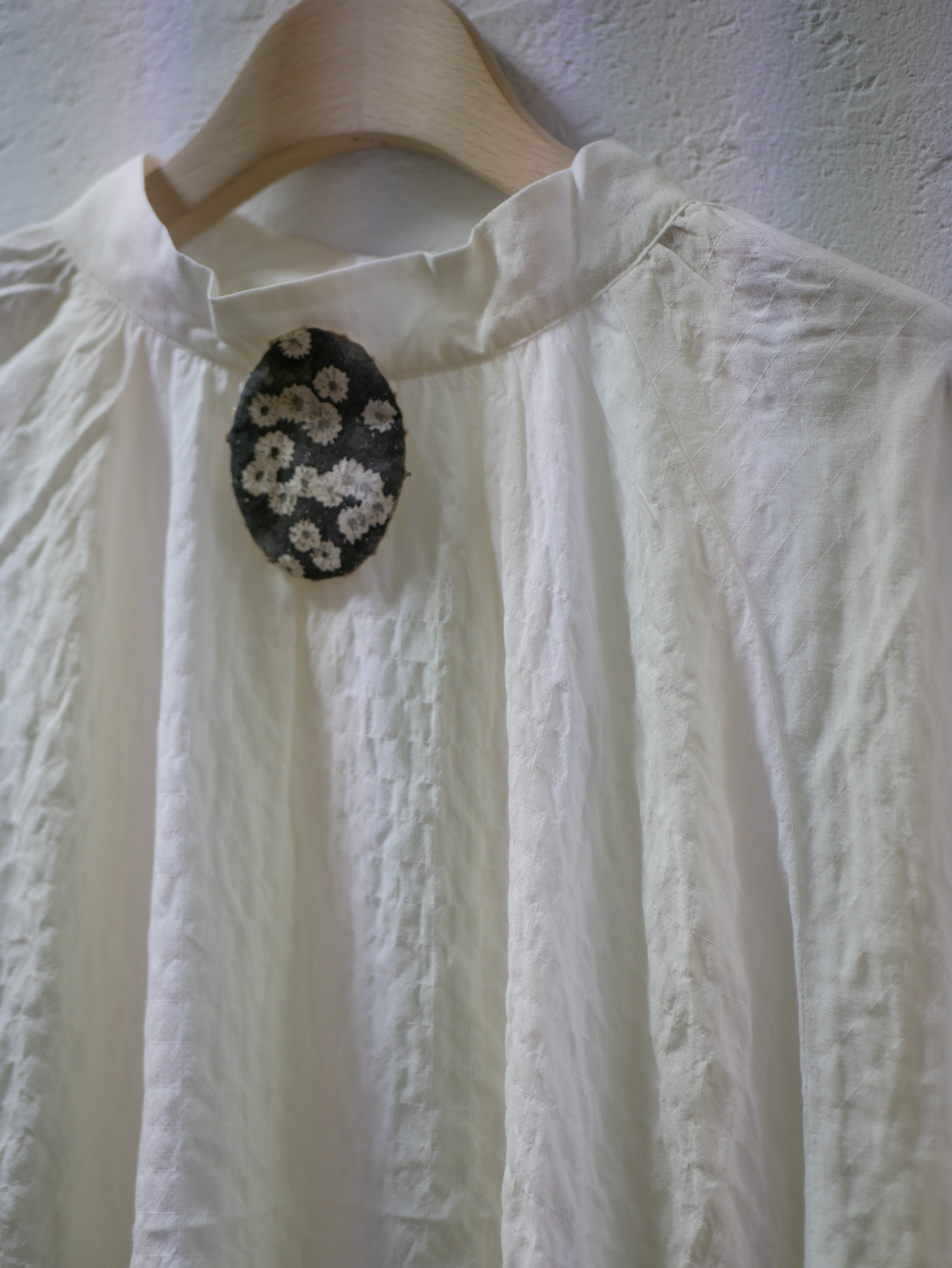 柔らかく、しなやかな気持ちいい素材です。Aラインで、後ろは緩やかにカーブしています。後ろ涙開きで開閉です。衿ぐりもハイネックで、上品です。凹凸のある生地で涼しく着ていただけます。お洗濯可能。