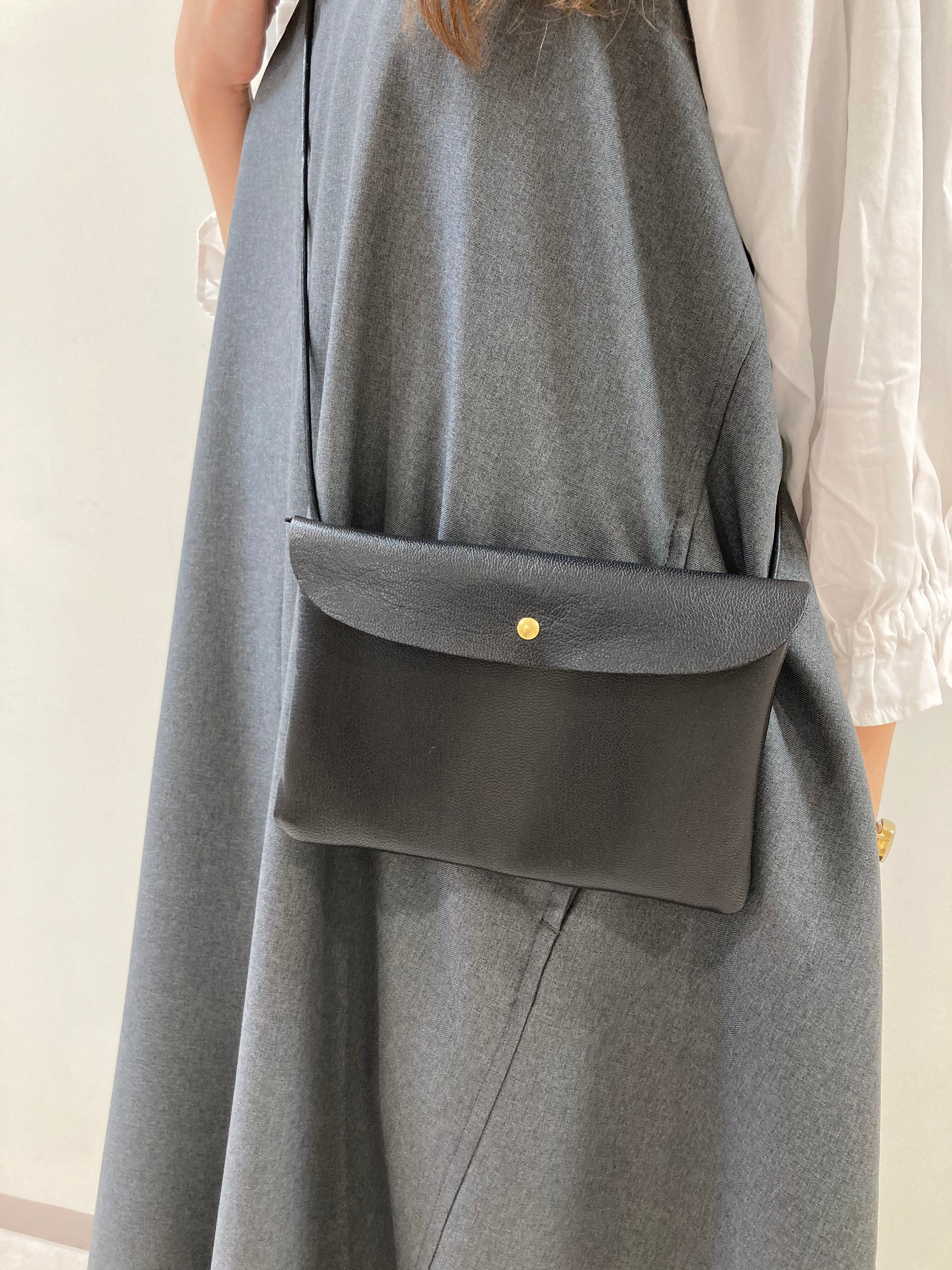 柔らかいヤギ革のサコッシュ。紐は簡単に伸ばしたり縮めたり調節可能です。中央にあるジップポケットは仕切り代わりにもなってます。コンパクトですが、アイテム仕分け管理でします。スマートフォン、ちょっとした小物など、マストアイテムの収納に役立ちます。シンプルでコーディネイトのポイントにもなりますよ。