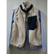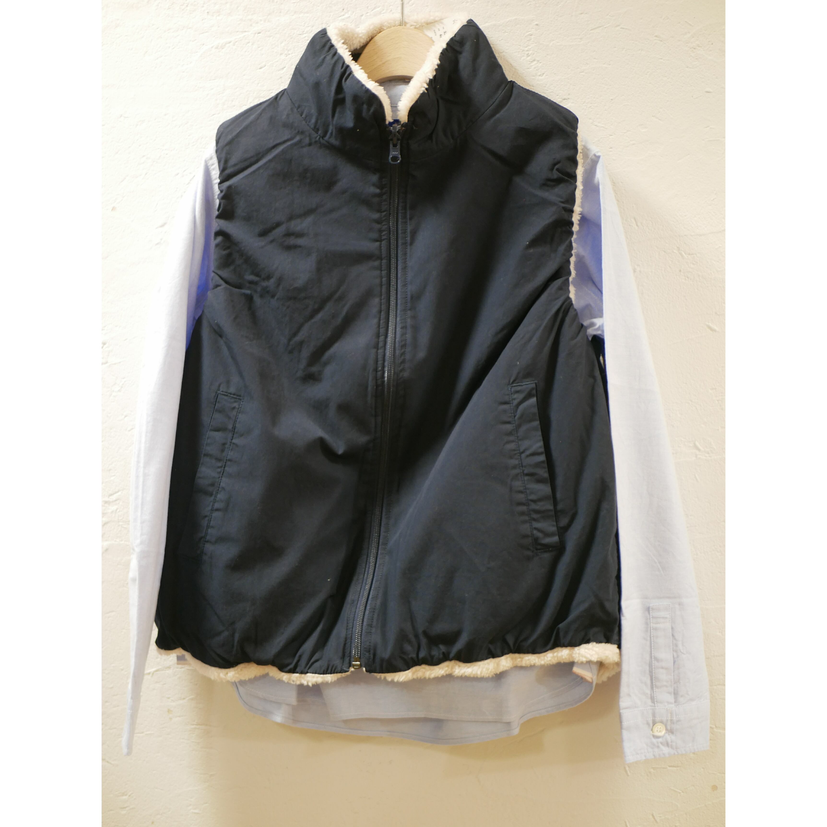 無地の綿素材とボアの2wayで着ていただけるベストです。シンプルで、スッキリした形です。暖かく、ボトムスはスカートにも、パンツにもバランスよく合わせていただけます。