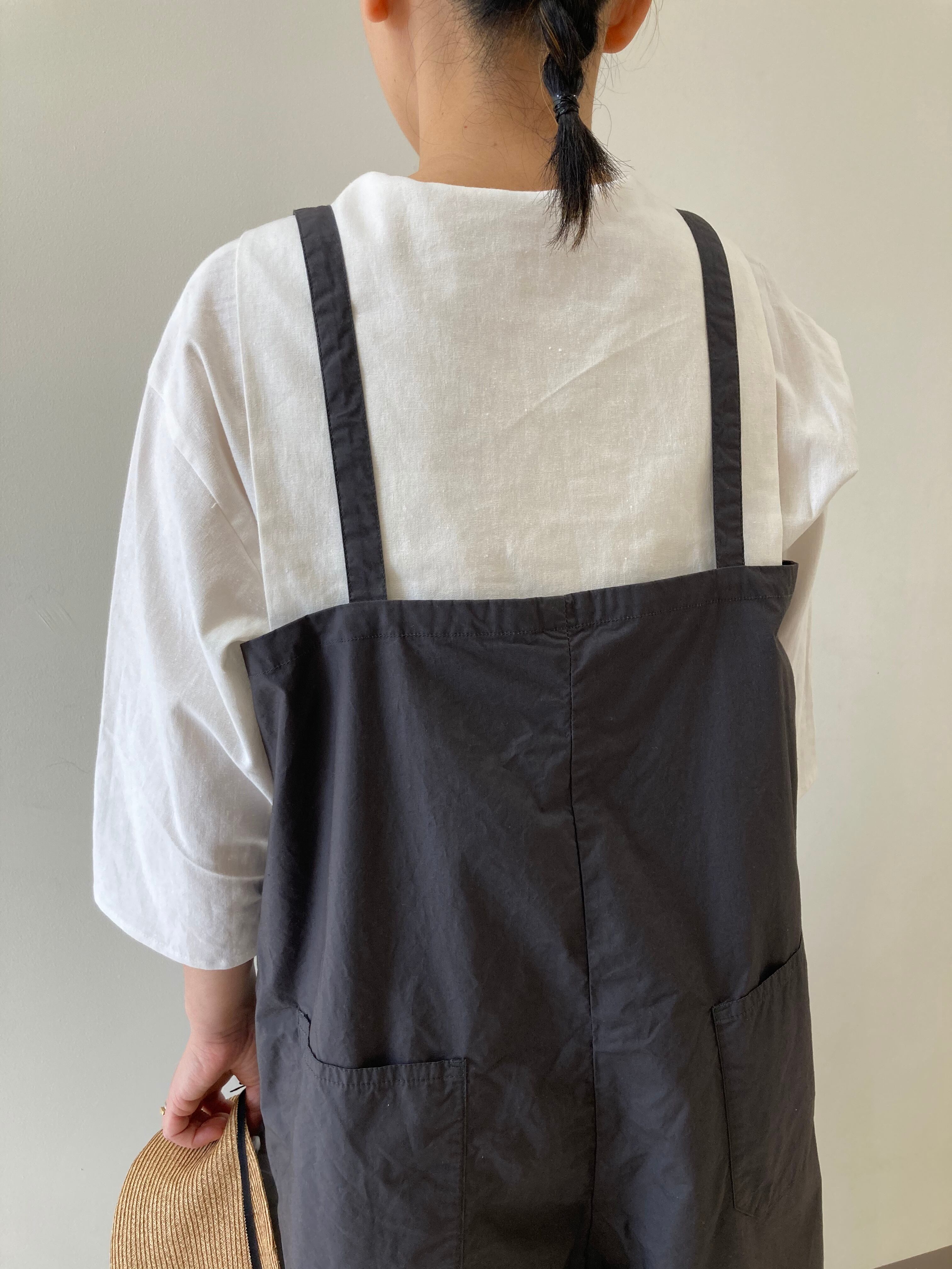 ややはりがあり、身体のラインを、ひろいません。肩紐は細めのデザインでカジュアルになり過ぎません。中に着るものを調整して長く着て頂けますよ。