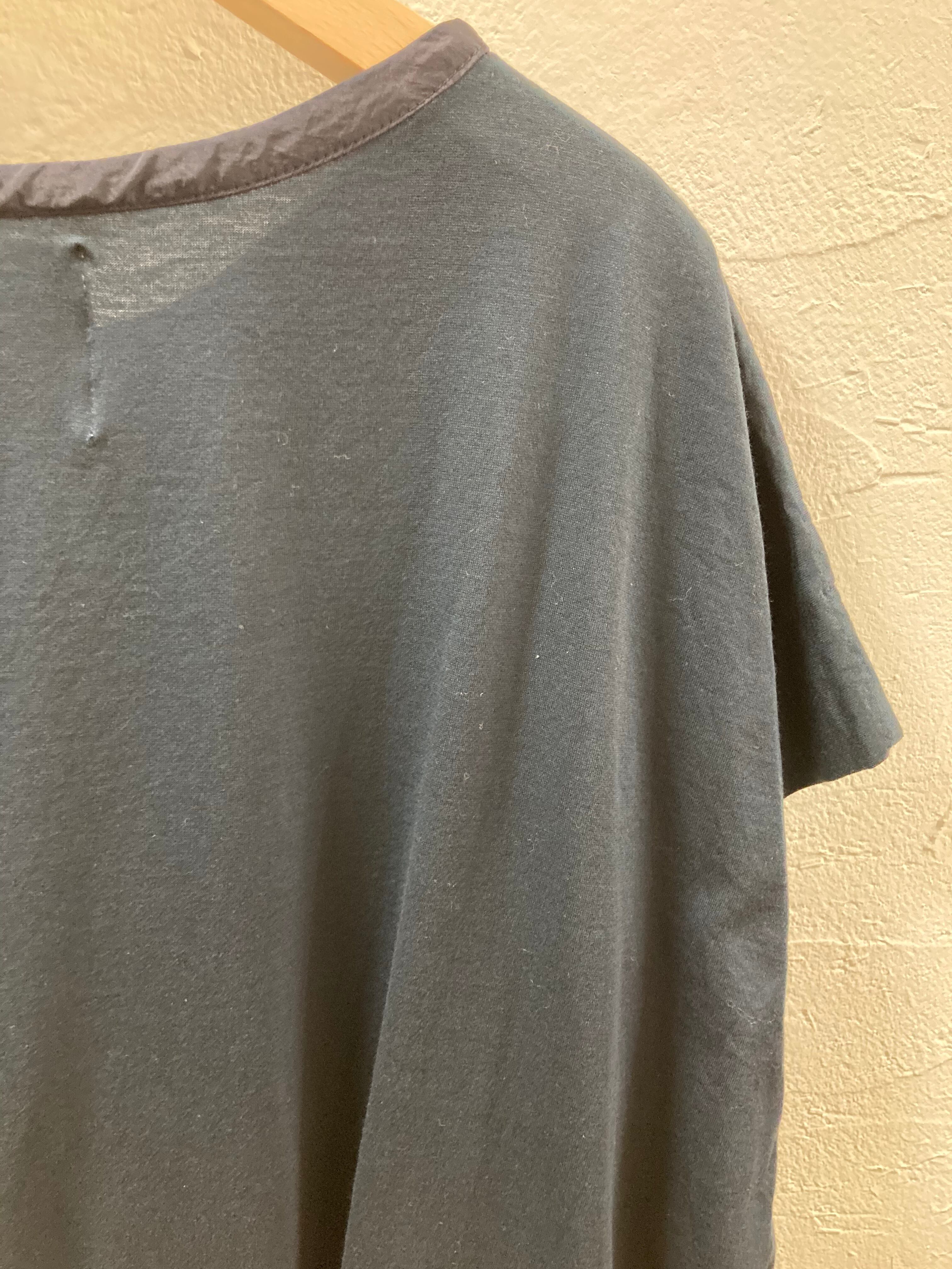 柔らかいシルケット天竺と極薄のしなやかなナイロンの組み合わせです。マットなナイロンとカットソーの組み合わせが普段にもお出かけにも使える一枚です。ナイロン部分の裏は天竺素材なので肌に当たる部分は綿になります。前見頃にゴムが二段。ギャザーで表情のあるワンピースです。
