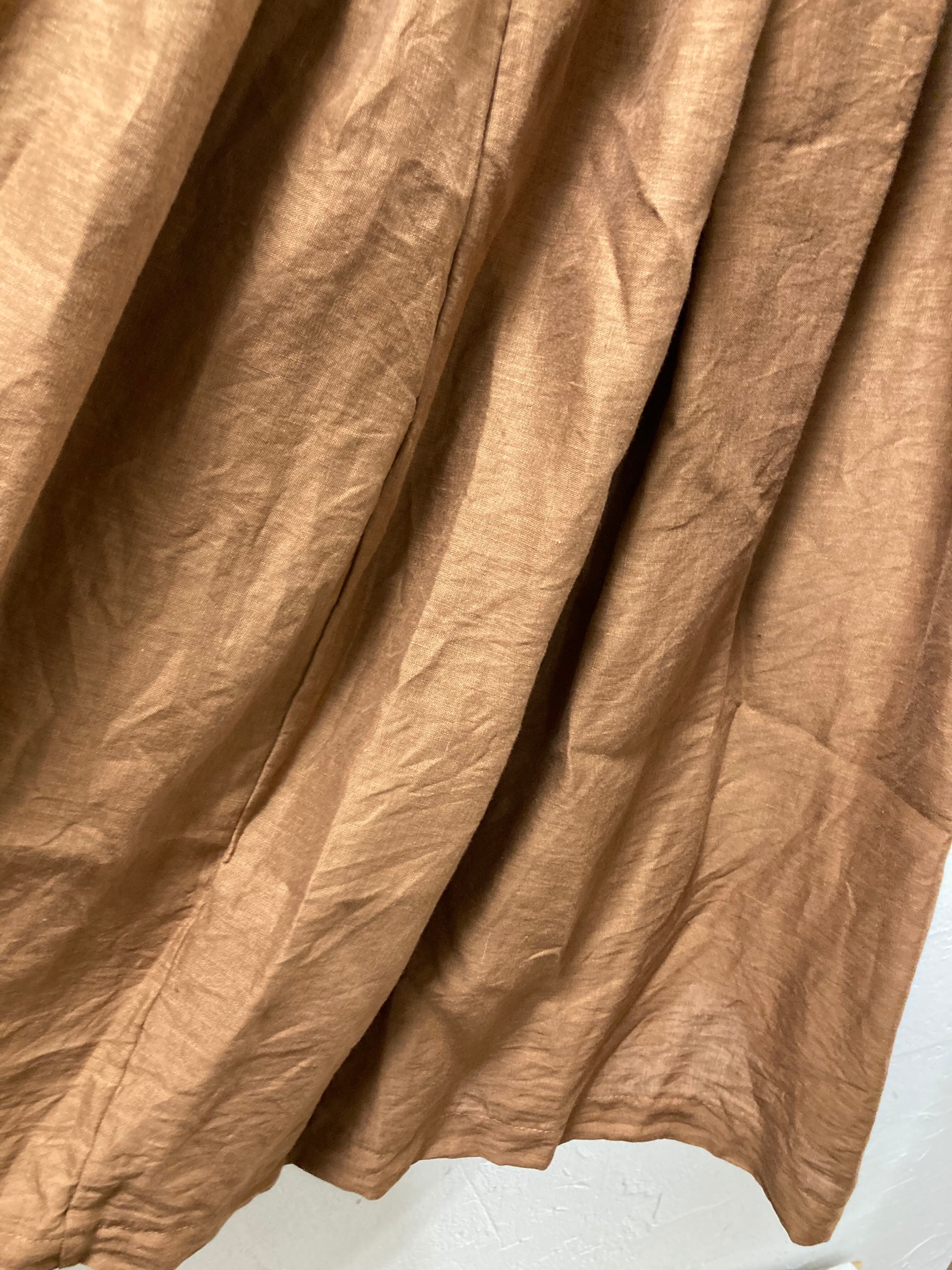 ウェストは総ゴムと紐で調節できます。ジャケットと合わせてキチンとも着れて、Tシャツでカジュアルにも合わせていただけるスカートです。