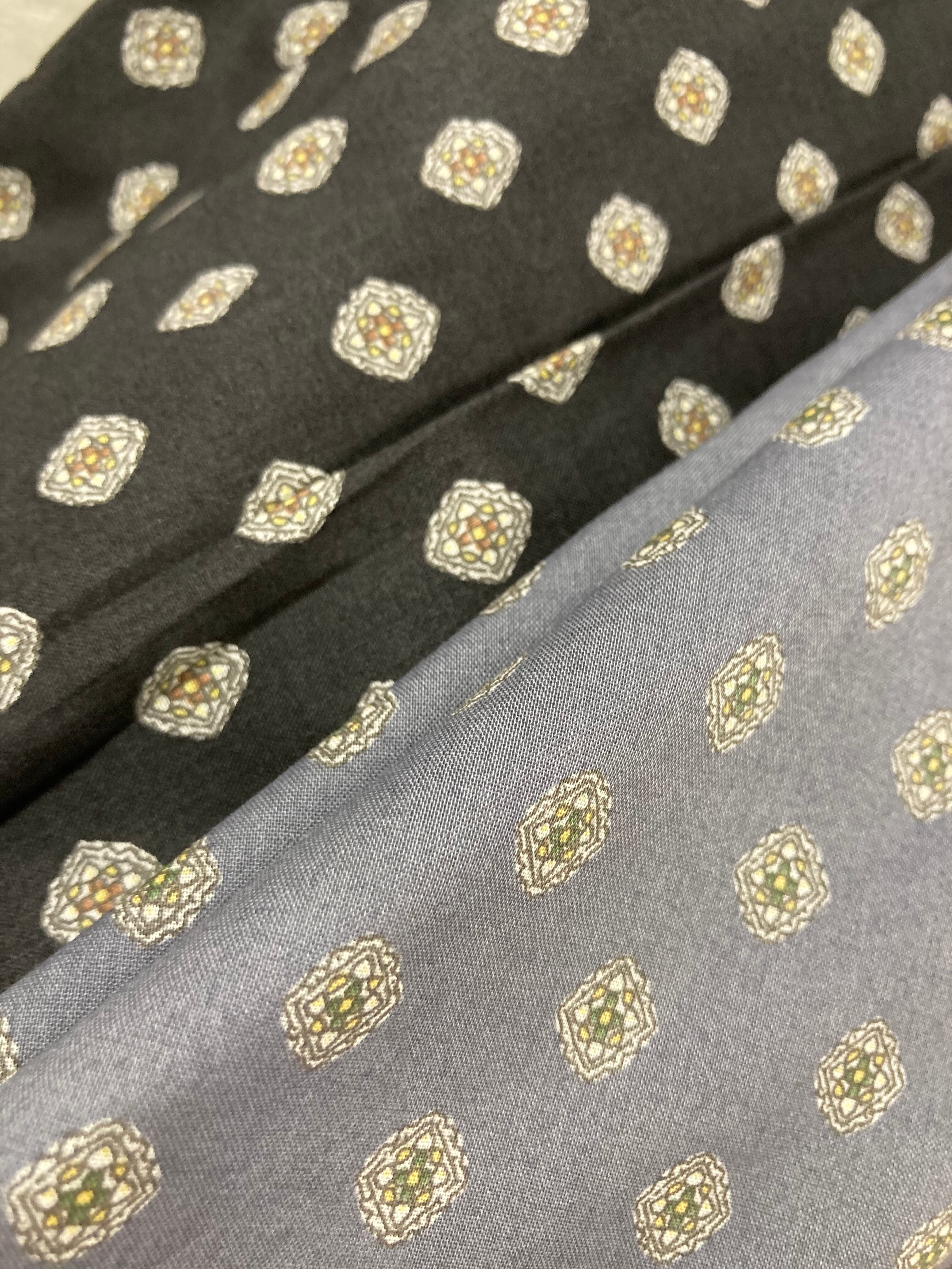 落ち着いたパターン柄のフレアスカート。ツルッとした上質なコットンです。ウェストは総ゴムです。生地をたっぷり使用してますが、腰回りがスッキリ、落ち感があり、揺れると動きがありキレイなシルエットです。Tシャツと合わせてカジュアルに。ブラウスやカーディガンと合わせてお出かけ着にもご利用いただけます。裏地付き。手洗い可。