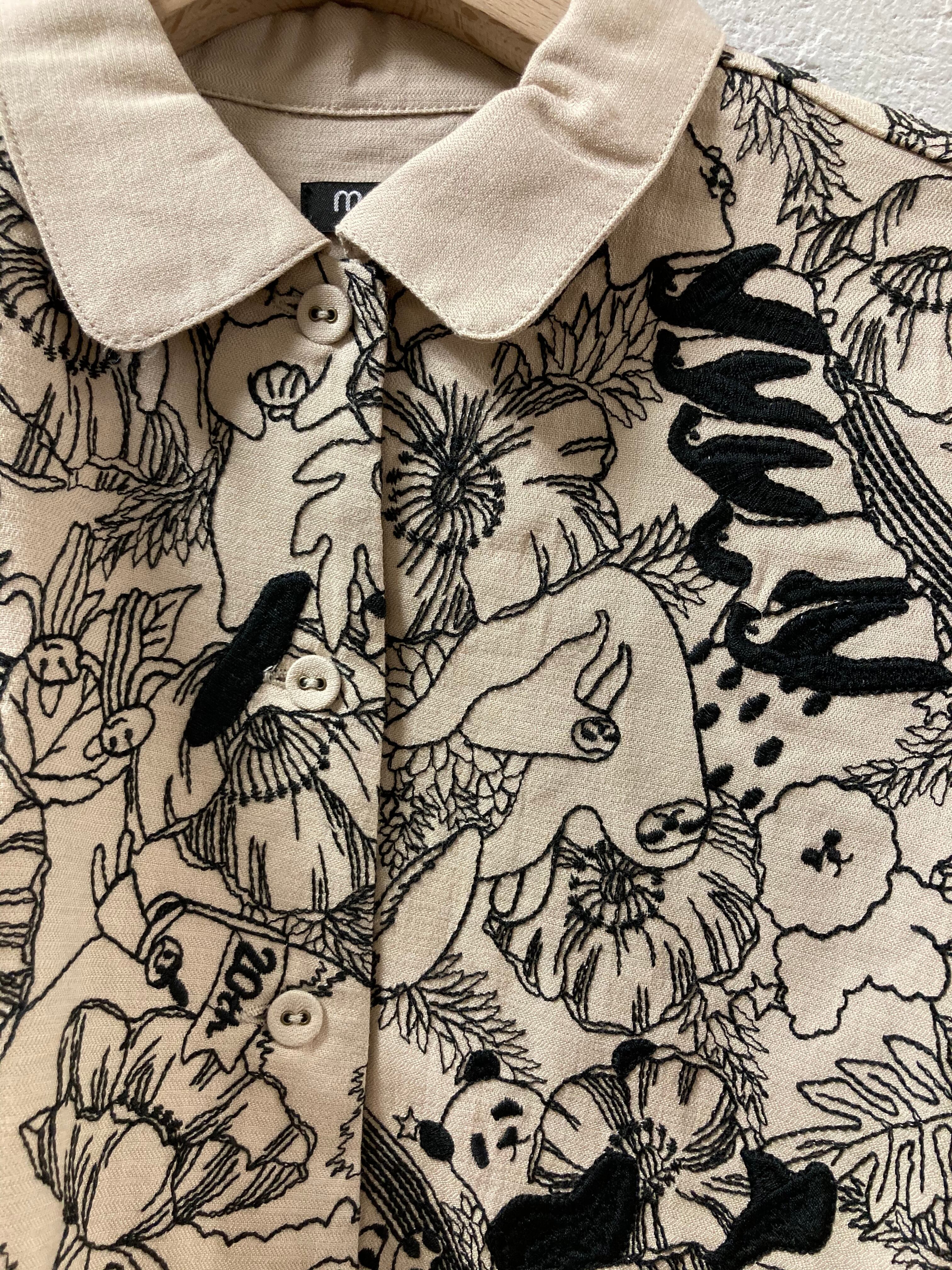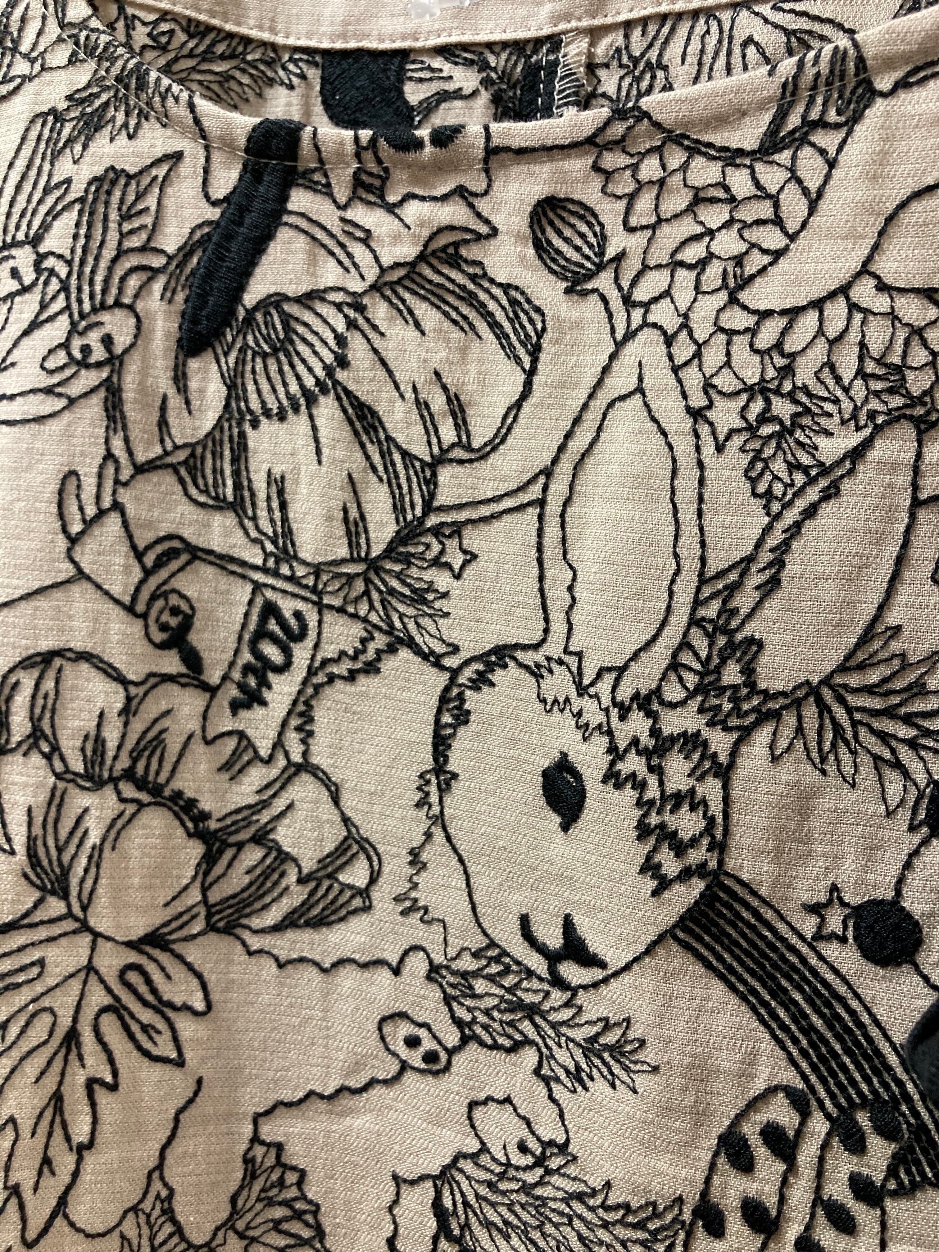 きちんと感を演出する襟元や、ゆったりAラインのシルエットなど、こだわりをぎゅっと詰めたシャツ。大人のリラックススタイルにぴったりの一枚です♪たっぷり楽しい刺繍をお楽しみください。