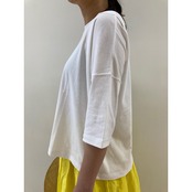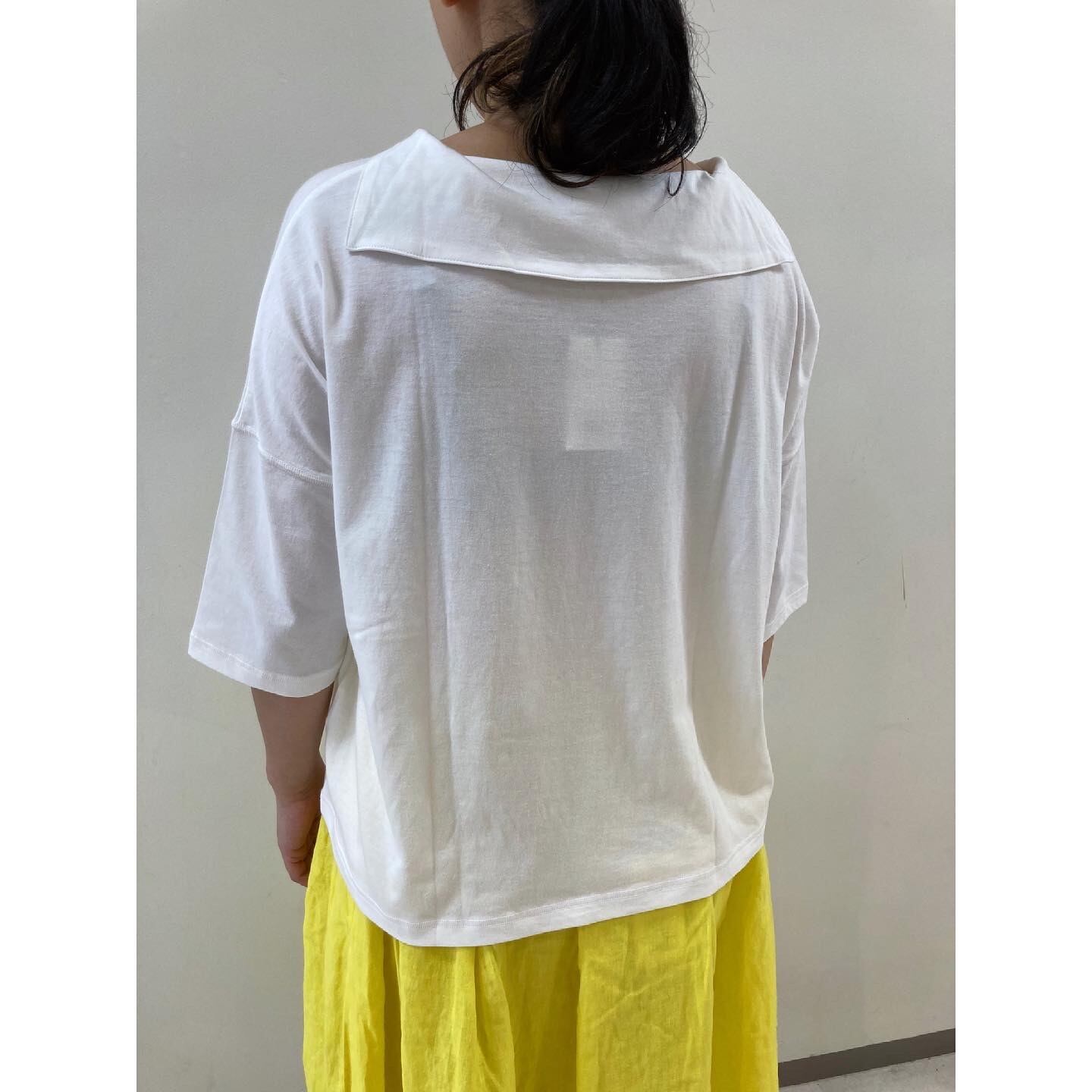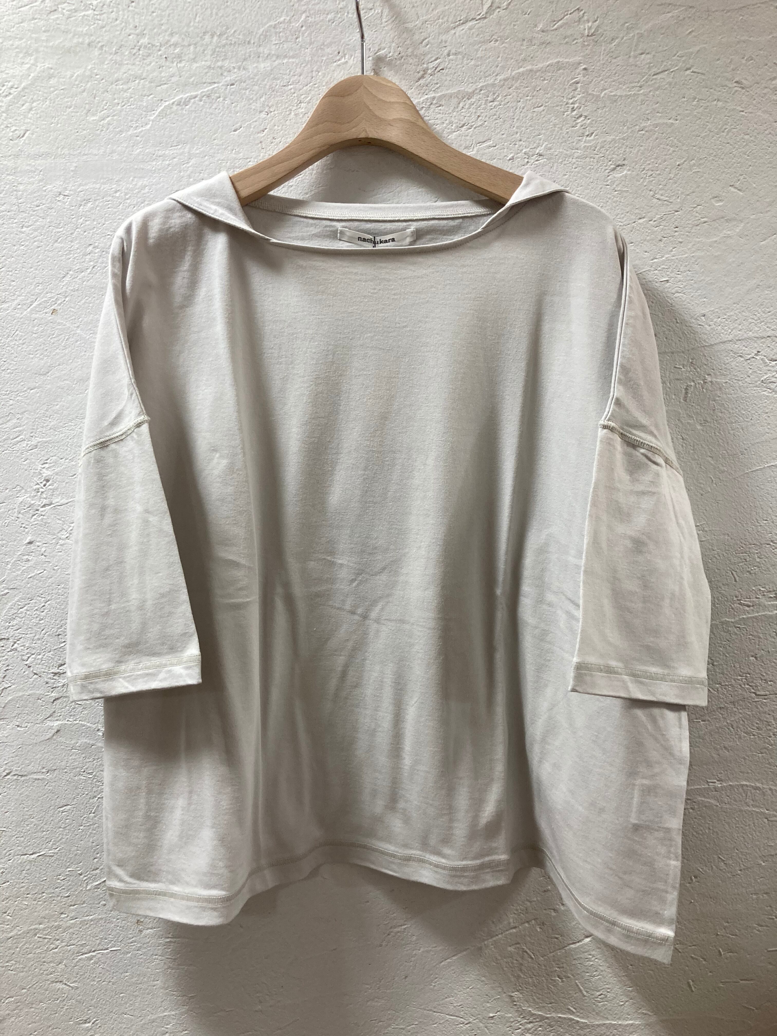柔らかい綿素材のカットソーです。ゆったりとした身幅と小さめのセーラーカラーがポイントです。スカートにもパンツにも合わせやすい丈感です。大人可愛い一枚です。お洗濯可能。
