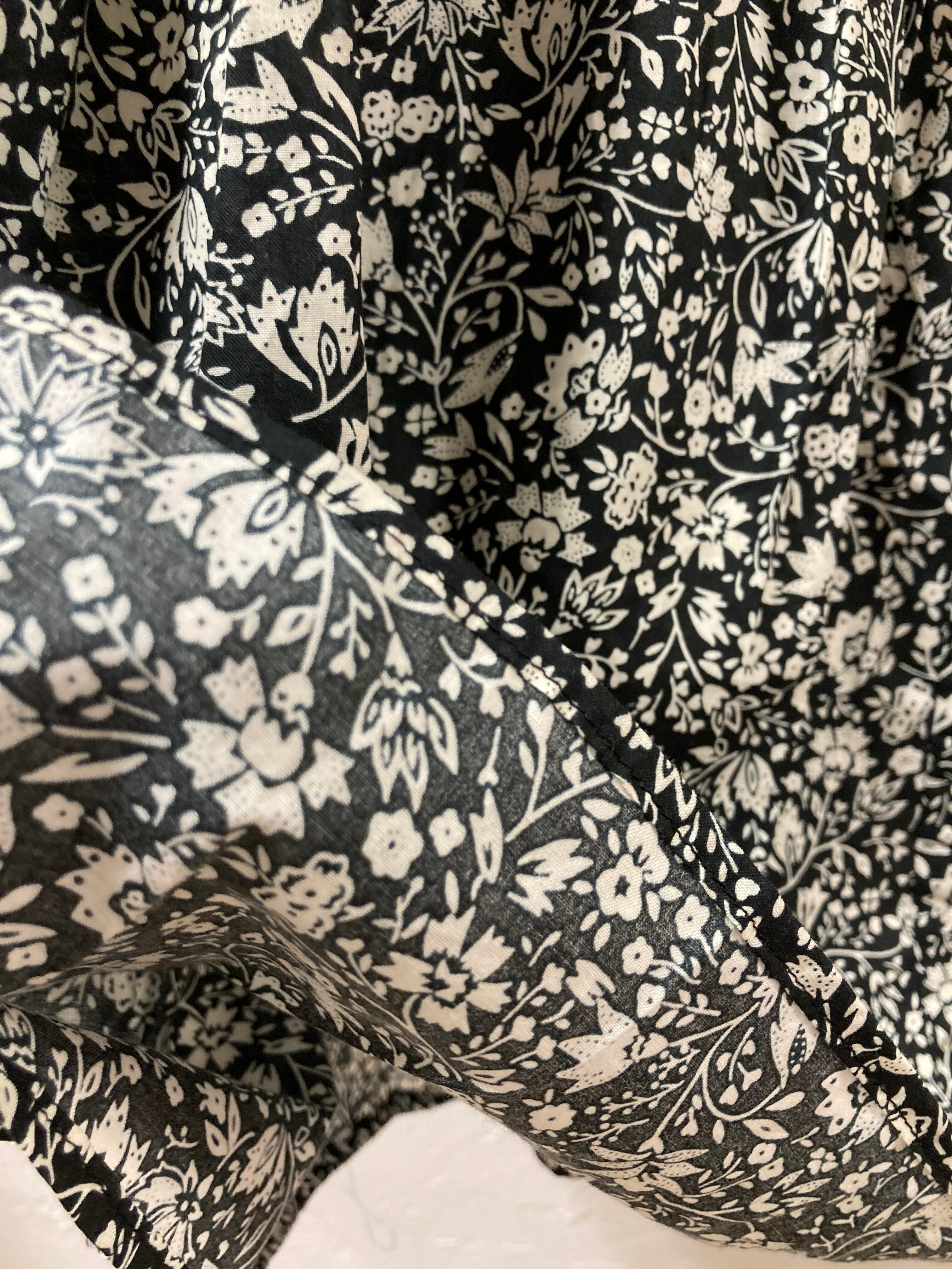 薄手のコットンにアンティーク風のボタニカルプリントを施してます。リラックス感もありながら上品に女性らしく着ていただけます。切り替え下はギャザーがありふんわり。ゆったりしてます。パンツなどに合わせて可愛く着ていただけますよ。お洗濯可能。