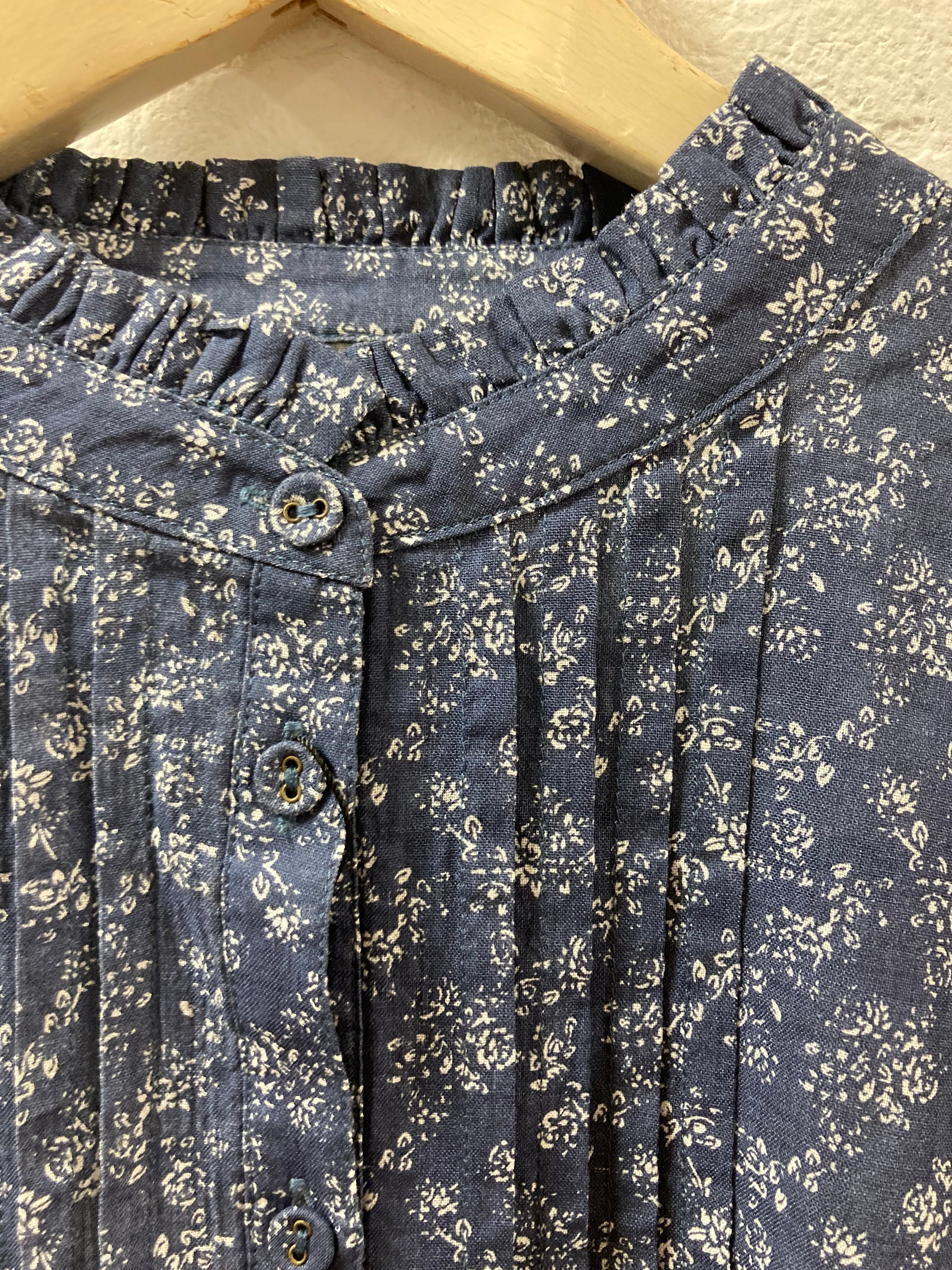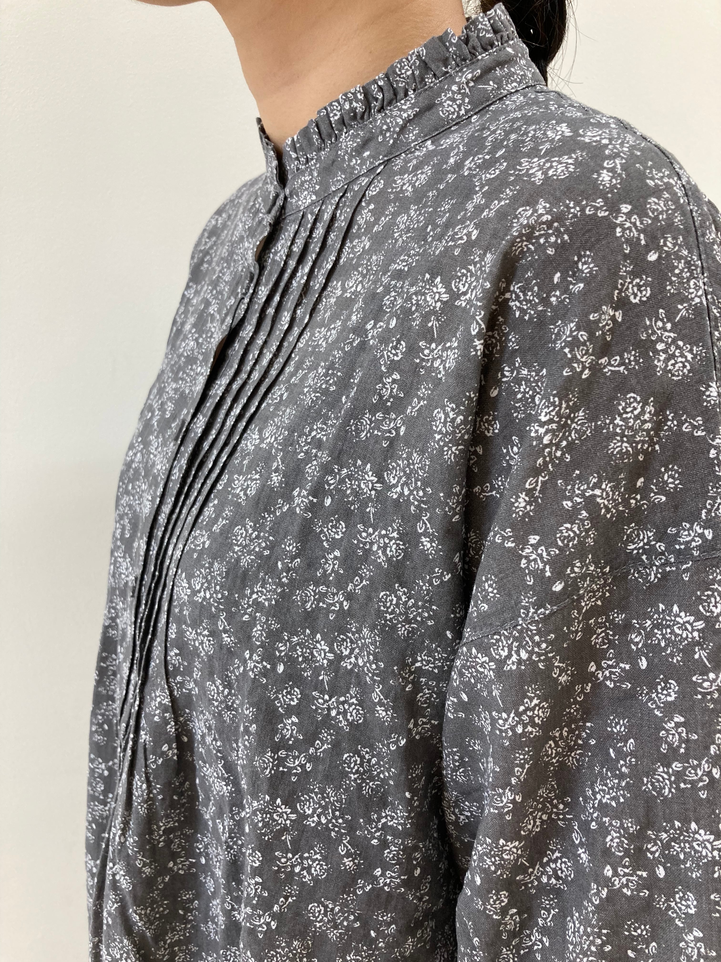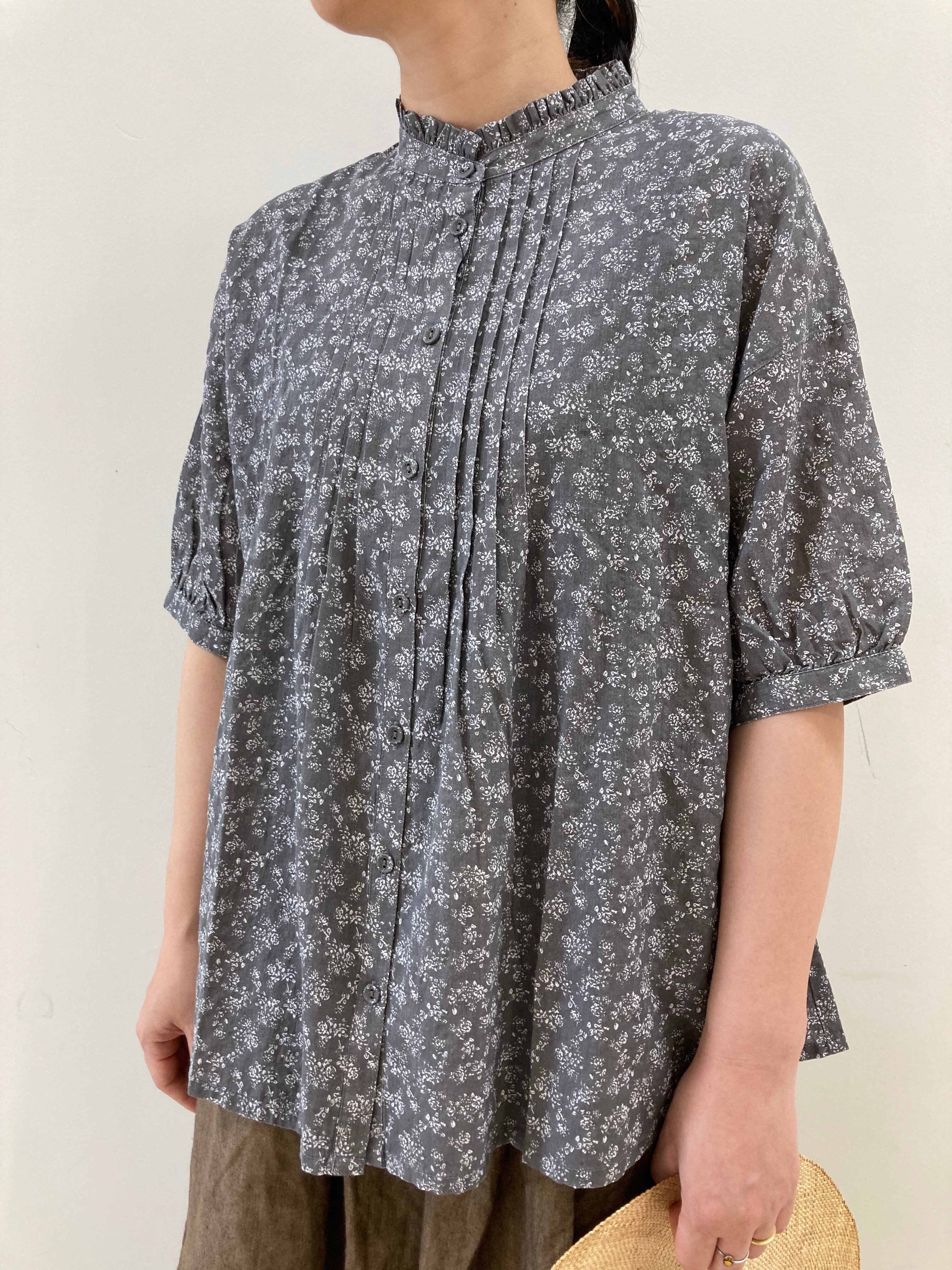 サラッとしたブラウス。クルミボタンと控えめなフリルが、可愛いです。ワイドパンツやスカートにも合わせやすい丈です。透け感もあまりありません。