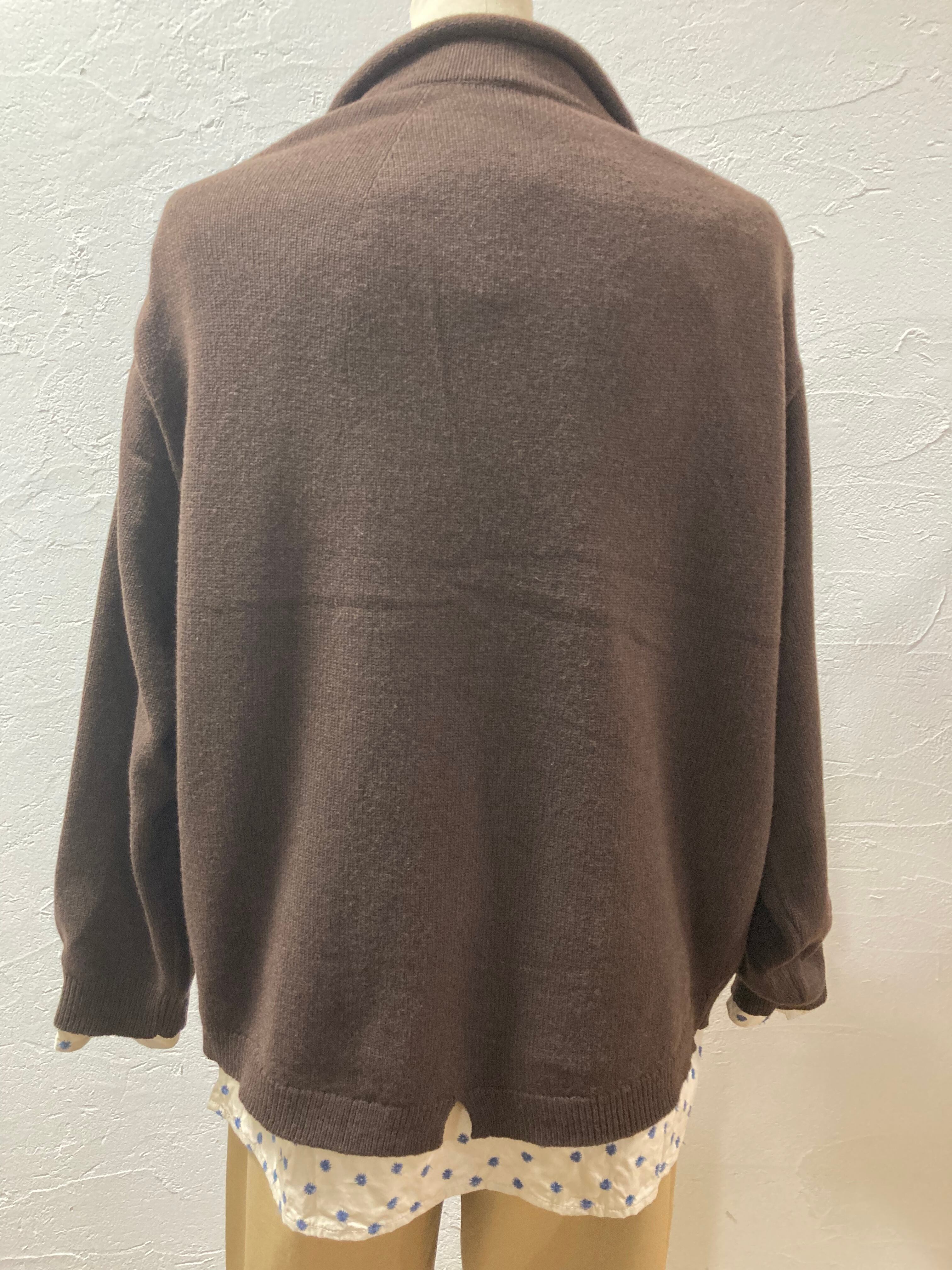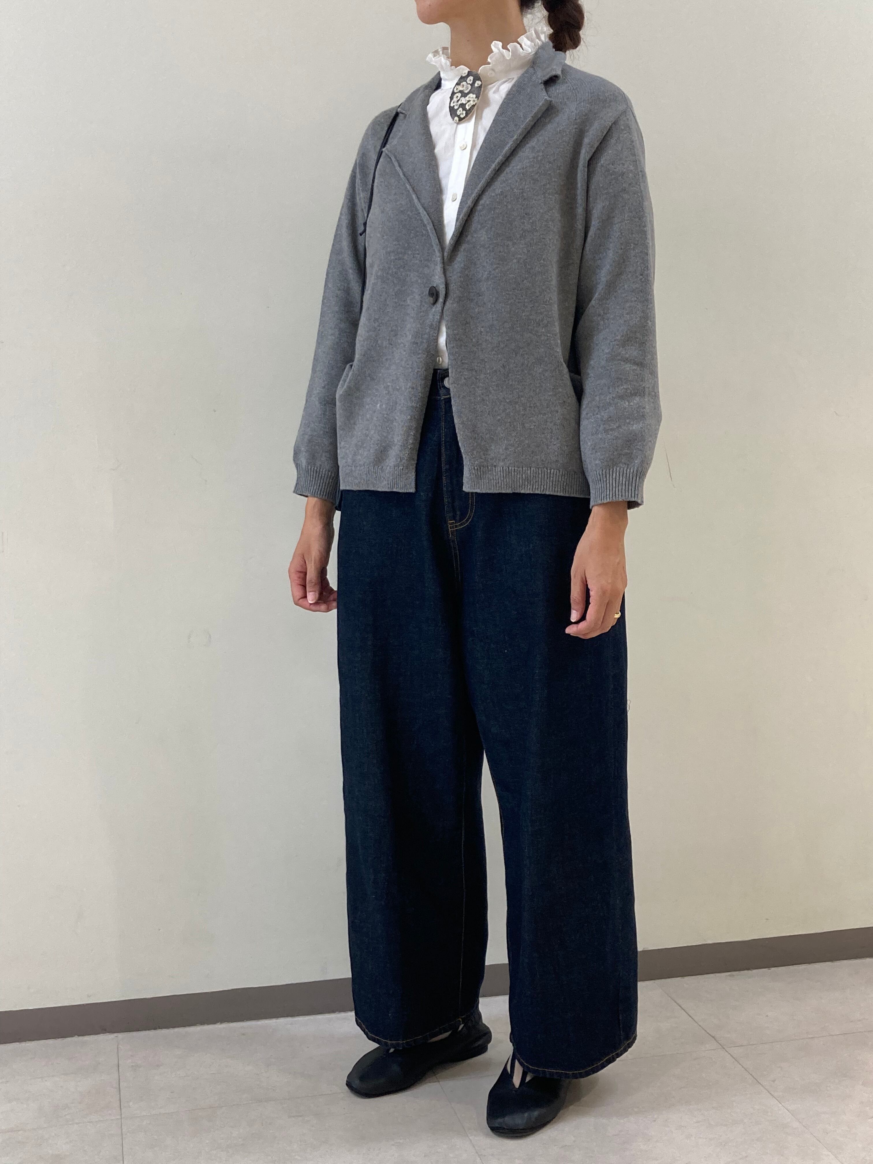 手触りのいいコットンと羊毛の中でも最高級である生後六ヶ月までの仔羊の毛である、ラムズウールでできた、襟付きカーディガン。きちんと感もありますが、気軽に着れて温かい一枚です。スカートにもパンツにも合わせやすく、お出かけから普段まで幅広くきていただけます。