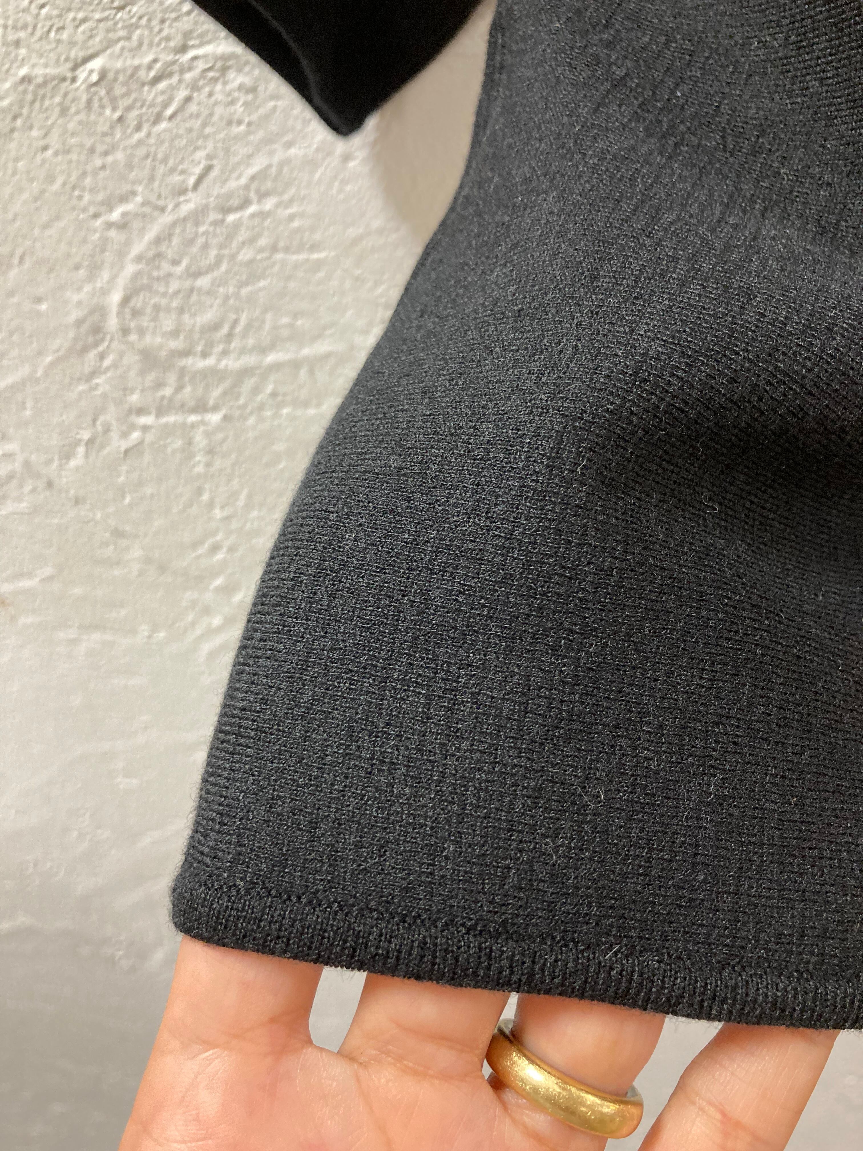細番手で編んだミラノリブは、弱いストレッチがあり、型崩れしにくい素材です。バックスタイルも可愛くポイントになります。スカートにもパンツにもバランスよく合わせられる丈感です。